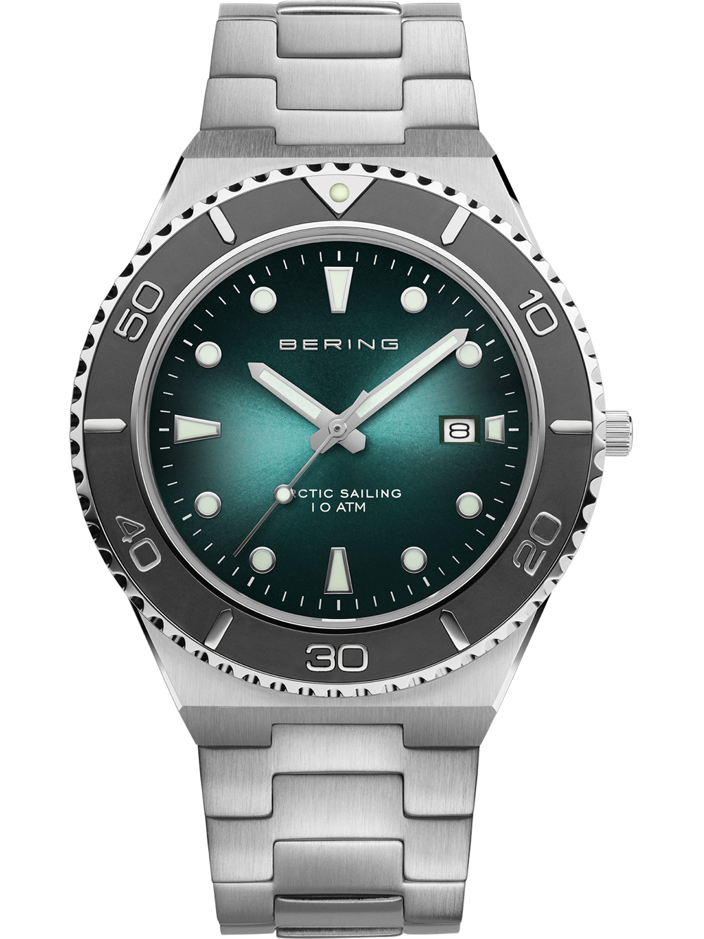 Marke: Bering • Hersteller-Nr.: 18940-708 • Hersteller Serie: Classic Sport 40mm 10ATM • Funktionen: Datum, Minute, Sekunde, Stunde • Antrieb: Batterie (Quarz) • Zifferblatt Farbe: Grün • Anzeige: Analog • Wasserdichte: 10 ATM • Lünette: Feststehend • Oberfläche: Mattiert, Poliert • Gehäuse Farbe: Silber • Gehäuse Material: Edelstahl • Gehäusedicke: 8 mm • Gehäuse Form: Rund • Gehäusebreite: 43 mm • Gehäuseboden: Edelstahlboden, verschraubt • Geschlecht: Herren • Glas: entspiegelt, Saphirglas • Beleuchtung: Leuchtindexe, Leuchtzeiger • Stil: Sportlich • Armband Material: Edelstahl • Armband Farbe: Silber • Bandanstoßbreite: 22 mm • Schließe: Faltschließe • Max. Handgelenkumfang: 210 mm • Artikelgewicht: 0.12 kg • Lieferumfang: Anleitung, Box, Garantie Dok., Umkarton