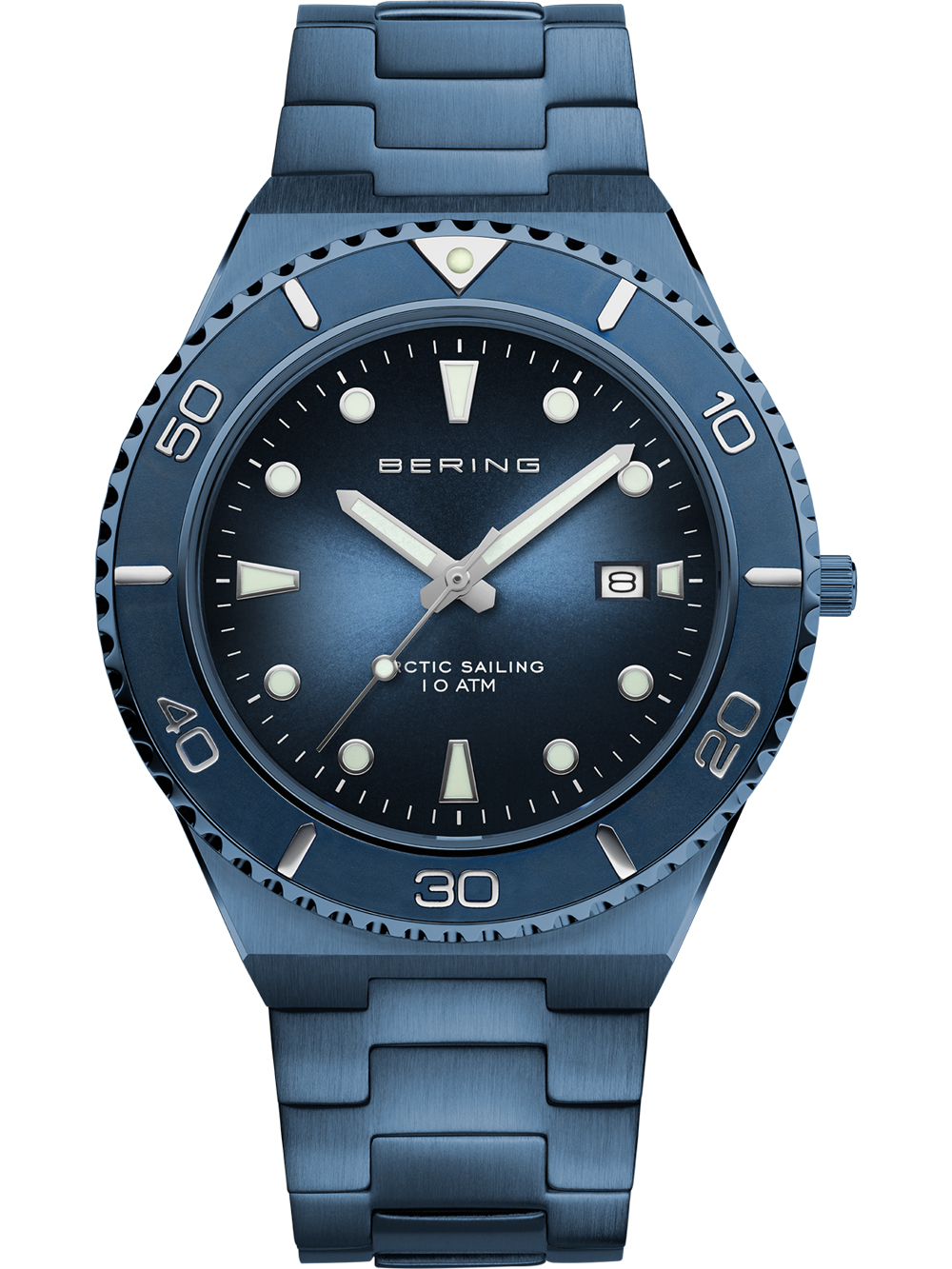 Marke: Bering • Hersteller-Nr.: 18940-797 • Hersteller Serie: Classic Sport 40mm 10ATM • Funktionen: Datum, Minute, Sekunde, Stunde • Antrieb: Batterie (Quarz) • Zifferblatt Farbe: Blau • Anzeige: Analog • Wasserdichte: 10 ATM • Lünette: Feststehend • Oberfläche: Mattiert, Poliert • Gehäuse Farbe: Blau • Gehäuse Material: Edelstahl • Gehäusedicke: 8 mm • Gehäuse Form: Rund • Gehäusebreite: 43 mm • Gehäuseboden: Edelstahlboden, verschraubt • Geschlecht: Herren • Glas: entspiegelt, Saphirglas • Beleuchtung: Leuchtindexe, Leuchtzeiger • Stil: Sportlich • Armband Material: Edelstahl • Armband Farbe: Blau • Bandanstoßbreite: 22 mm • Schließe: Faltschließe • Max. Handgelenkumfang: 210 mm • Artikelgewicht: 0.12 kg • Lieferumfang: Anleitung, Box, Garantie Dok., Umkarton