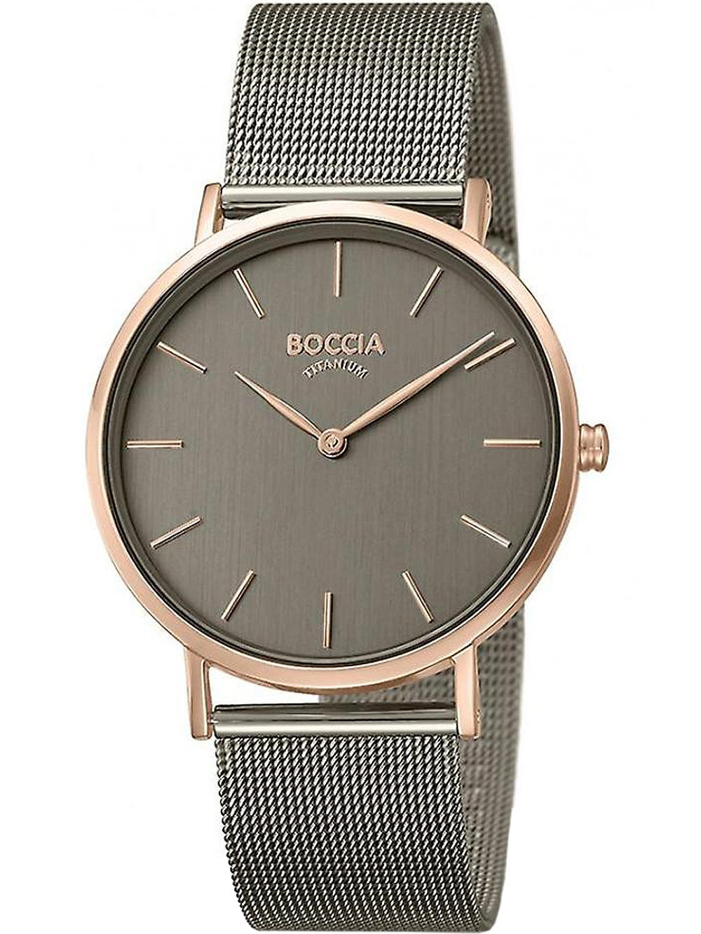 Marke: Boccia • Hersteller-Nr.: 3273-08 • Hersteller Serie: Damenuhr Titanium 36mm • Funktionen: Minute, Stunde • Antrieb: Batterie (Quarz) • Zifferblatt Farbe: Grau • Anzeige: Analog • Wasserdichte: 3 ATM • Lünette: Feststehend • Oberfläche: Mattiert, Poliert • Gehäuse Farbe: Roségold • Gehäuse Material: Titanium • Gehäusedicke: 6 mm • Gehäuse Form: Rund • Gehäusebreite: 36 mm • Gehäuseboden: gepresst, Titaniumboden • Geschlecht: Damen • Glas: gehärtet, Mineralglas • Stil: Modern • Armband Material: Edelstahl • Armband Farbe: Grau • Bandanstoßbreite: 18 mm • Schließe: Klippschließe • Max. Handgelenkumfang: 205 mm • Artikelgewicht: 0.04 kg • Lieferumfang: Anleitung, Box, Garantie Dok., Umkarton