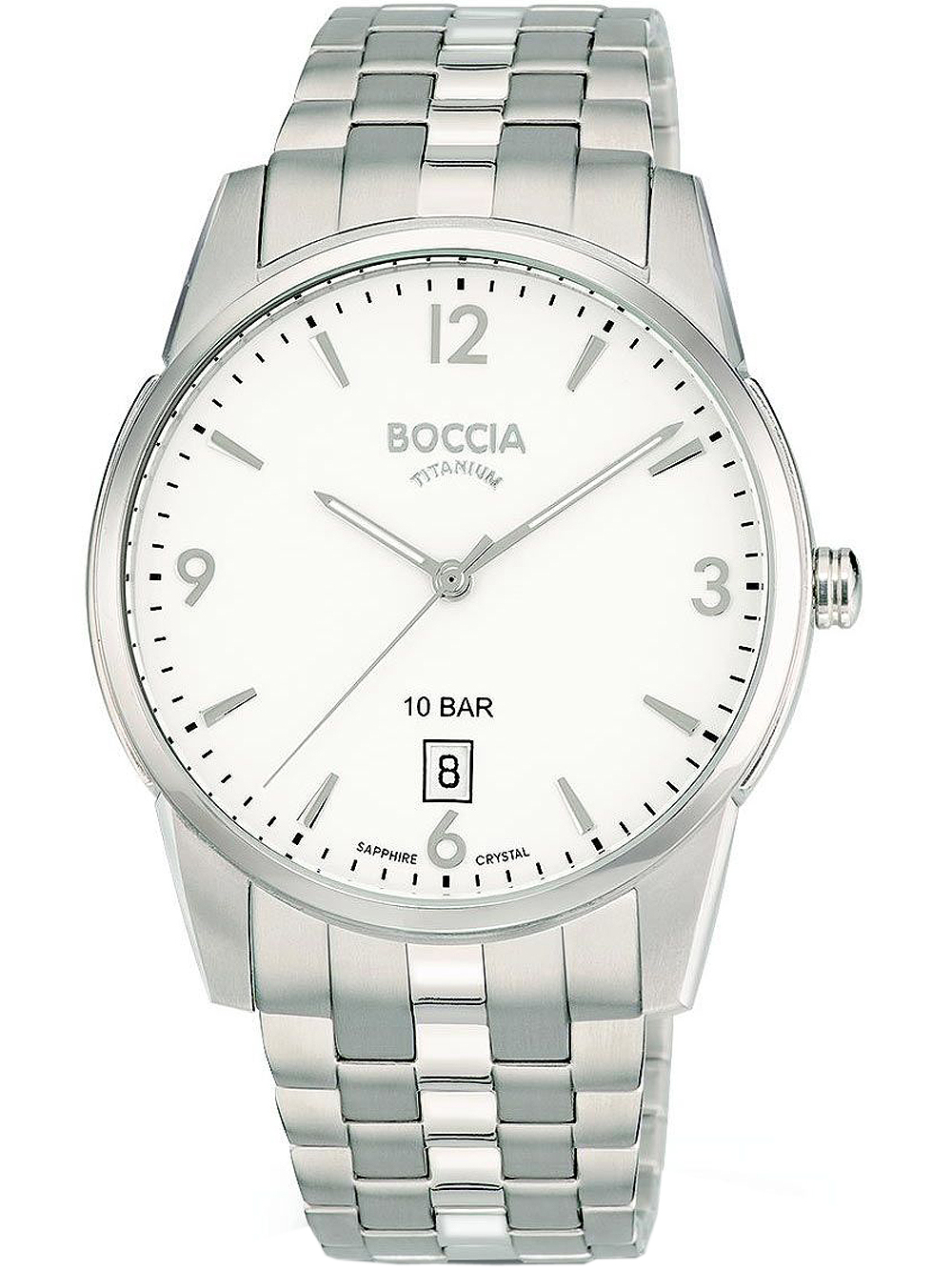 Marke: Boccia • Hersteller-Nr.: 3632-01 • Hersteller Serie: Herrenuhr Titanium 40mm • Funktionen: Datum, Minute, Sekunde, Stunde • Antrieb: Batterie (Quarz) • Zifferblatt Farbe: Weiß • Anzeige: Analog • Wasserdichte: 10 ATM • Lünette: Feststehend • Oberfläche: Mattiert, Poliert • Gehäuse Farbe: Silber • Gehäuse Material: Titanium • Gehäusedicke: 9 mm • Gehäuse Form: Rund • Gehäusebreite: 40 mm • Gehäuseboden: Titaniumboden, verschraubt • Geschlecht: Herren • Glas: entspiegelt, Saphirglas • Beleuchtung: Leuchtzeiger • Stil: Modern • Armband Material: Titanium • Armband Farbe: Silber • Bandanstoßbreite: 21 mm • Schließe: Faltschließe • Max. Handgelenkumfang: 210 mm • Artikelgewicht: 0.07 kg • Lieferumfang: Anleitung, Box, Garantie Dok., Umkarton