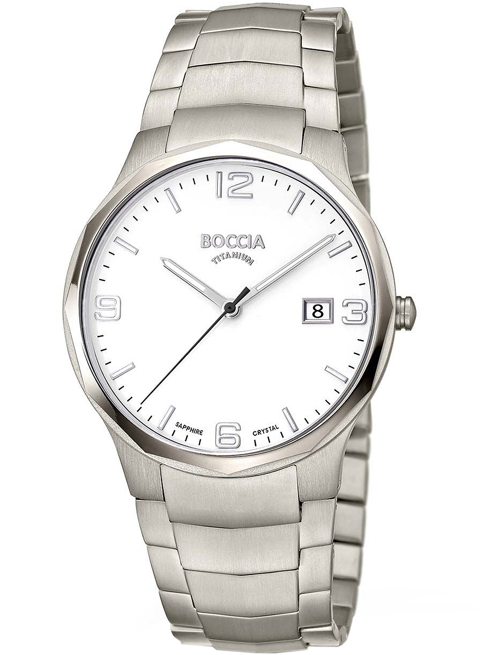 Marke: Boccia • Hersteller-Nr.: 3656-01 • Hersteller Serie: Herrenuhr Titanium 39mm • Funktionen: Datum, Minute, Sekunde, Stunde • Antrieb: Batterie (Quarz) • Zifferblatt Farbe: Weiß • Anzeige: Analog • Wasserdichte: 5 ATM • Lünette: Feststehend • Oberfläche: Mattiert, Poliert • Gehäuse Farbe: Silber • Gehäuse Material: Titanium • Gehäusedicke: 8 mm • Gehäuse Form: Rund • Gehäusebreite: 39 mm • Gehäuseboden: gepresst, Titaniumboden • Geschlecht: Herren • Glas: entspiegelt, Saphirglas • Beleuchtung: Leuchtindexe, Leuchtzeiger • Stil: Modern • Armband Material: Titanium • Armband Farbe: Silber • Bandanstoßbreite: 24 mm • Schließe: Faltschließe • Max. Handgelenkumfang: 200 mm • Artikelgewicht: 0.07 kg • Lieferumfang: Anleitung, Box, Garantie Dok., Umkarton