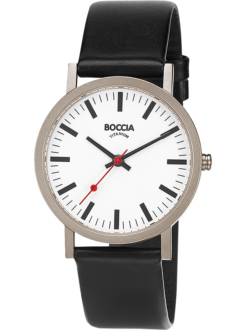 Marke: Boccia • Hersteller-Nr.: 521-03 • Hersteller Serie: Herrenuhr Titanium 35mm • Funktionen: Minute, Sekunde, Stunde • Antrieb: Batterie (Quarz) • Zifferblatt Farbe: Weiß • Anzeige: Analog • Wasserdichte: 3 ATM • Lünette: Feststehend • Oberfläche: Mattiert • Gehäuse Farbe: Silber • Gehäuse Material: Titanium • Gehäusedicke: 7 mm • Gehäuse Form: Rund • Gehäusebreite: 35 mm • Gehäuseboden: gepresst, Titaniumboden • Geschlecht: Herren • Glas: gehärtet, Mineralglas • Stil: Modern • Armband Material: Kalbsleder • Armband Farbe: Schwarz • Bandanstoßbreite: 18 mm • Schließe: Dornschließe • Max. Handgelenkumfang: 200 mm • Artikelgewicht: 0.02 kg • Lieferumfang: Anleitung, Box, Garantie Dok., Umkarton