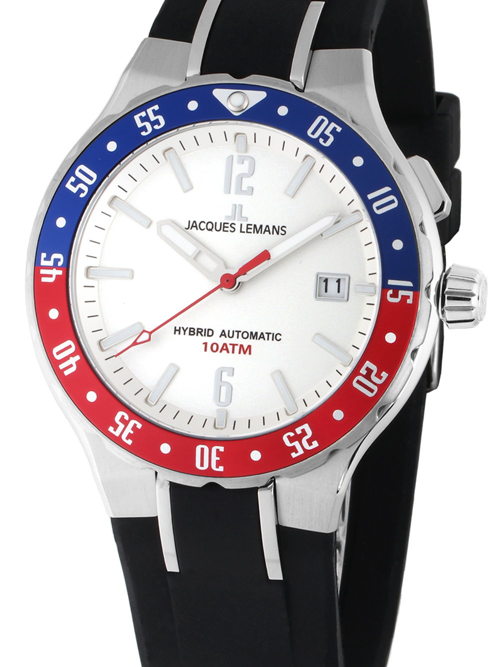 Marke: Jacques Lemans • Hersteller-Nr.: 1-2109B • Hersteller Serie: Hybromatic 42mm • Funktionen: Datum, Minute, Sekunde, Stunde • Antrieb: Hybromatic (Quarz) • Zifferblatt Farbe: Silber • Anzeige: Analog • Wasserdichte: 10 ATM • Lünette: Drehbar, linksseitig • Oberfläche: Mattiert, Poliert • Gehäuse Farbe: Silber • Gehäuse Material: Edelstahl • Gehäusedicke: 12 mm • Gehäuse Form: Rund • Gehäusebreite: 42 mm • Gehäuseboden: Glasboden, verschraubt • Geschlecht: Herren • Glas: gehärtet, Mineralglas • Stil: Sportlich • Armband Material: Silikon • Armband Farbe: Schwarz • Bandanstoßbreite: 22 mm • Schließe: Dornschließe • Max. Handgelenkumfang: 210 mm • Artikelgewicht: 0.09 kg • Lieferumfang: Anleitung, Box, Garantie Dok., Umkarton