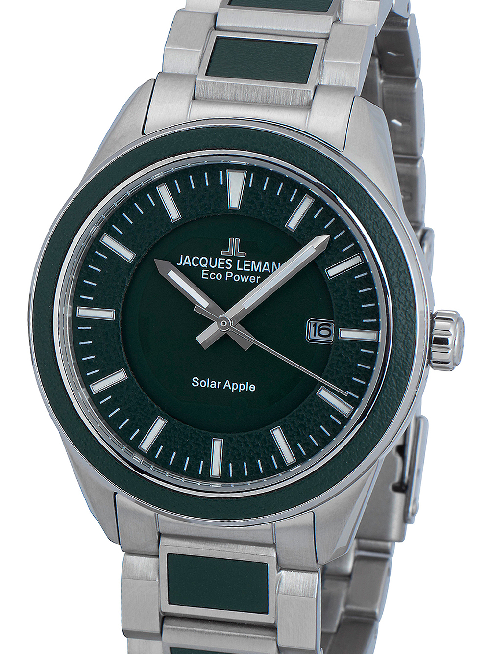 Marke: Jacques Lemans • Hersteller-Nr.: 1-2116E • Hersteller Serie: Eco Power 40mm • Funktionen: Datum, Minute, Sekunde, Solar, Stunde • Antrieb: Solar (Quarz) • Zifferblatt Farbe: Grün • Anzeige: Analog • Wasserdichte: 10 ATM • Lünette: Feststehend • Oberfläche: Mattiert, Poliert • Gehäuse Farbe: Silber • Gehäuse Material: Edelstahl • Gehäusedicke: 11 mm • Gehäuse Form: Rund • Gehäusebreite: 40 mm • Gehäuseboden: Edelstahlboden, verschraubt • Geschlecht: Herren • Glas: gehärtet, Mineralglas • Beleuchtung: Leuchtindexe, Leuchtzeiger • Stil: Klassisch • Armband Material: Edelstahl, veganes Leder • Armband Farbe: Grün, Silber • Bandanstoßbreite: 20 mm • Schließe: Faltschließe • Max. Handgelenkumfang: 190 mm • Artikelgewicht: 0.11 kg • Lieferumfang: Anleitung, Box, Garantie Dok., Umkarton