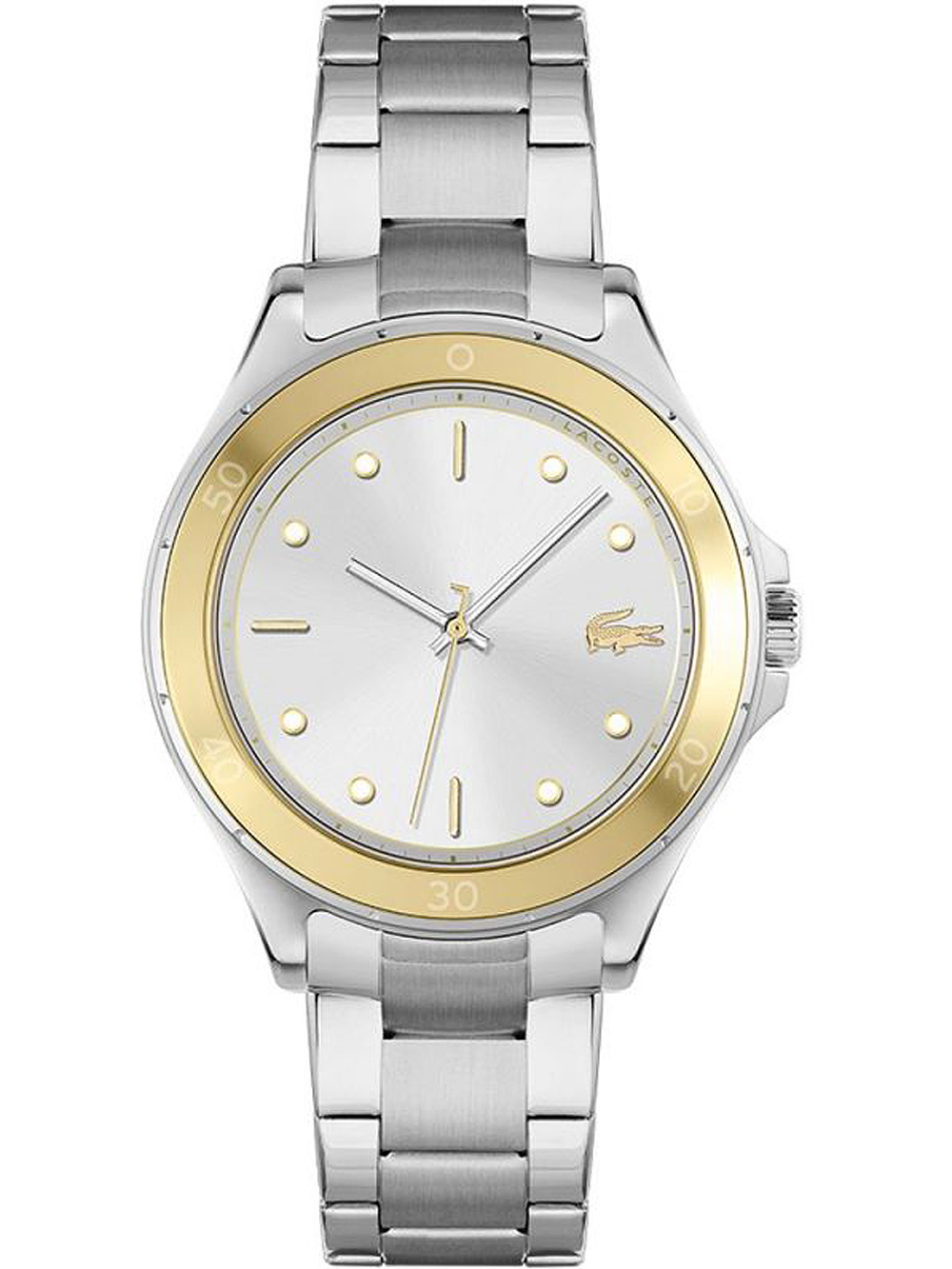 Marke: Lacoste • Hersteller-Nr.: 2001222 • Hersteller Serie: Swing 38mm • Funktionen: Minute, Sekunde, Stunde • Antrieb: Batterie (Quarz) • Zifferblatt Farbe: Silber • Anzeige: Analog • Wasserdichte: 5 ATM • Lünette: Feststehend • Oberfläche: Mattiert, Poliert • Gehäuse Farbe: Roségold, Silber • Gehäuse Material: Edelstahl • Gehäusedicke: 9 mm • Gehäuse Form: Rund • Gehäusebreite: 38 mm • Gehäuseboden: Edelstahlboden, gepresst • Geschlecht: Damen • Glas: gehärtet, Mineralglas • Stil: Modern • Armband Material: Edelstahl • Armband Farbe: Silber • Bandanstoßbreite: 18 mm • Schließe: Faltschließe • Max. Handgelenkumfang: 180 mm • Artikelgewicht: 0.09 kg • Lieferumfang: Anleitung, Box, Garantie Dok., Umkarton