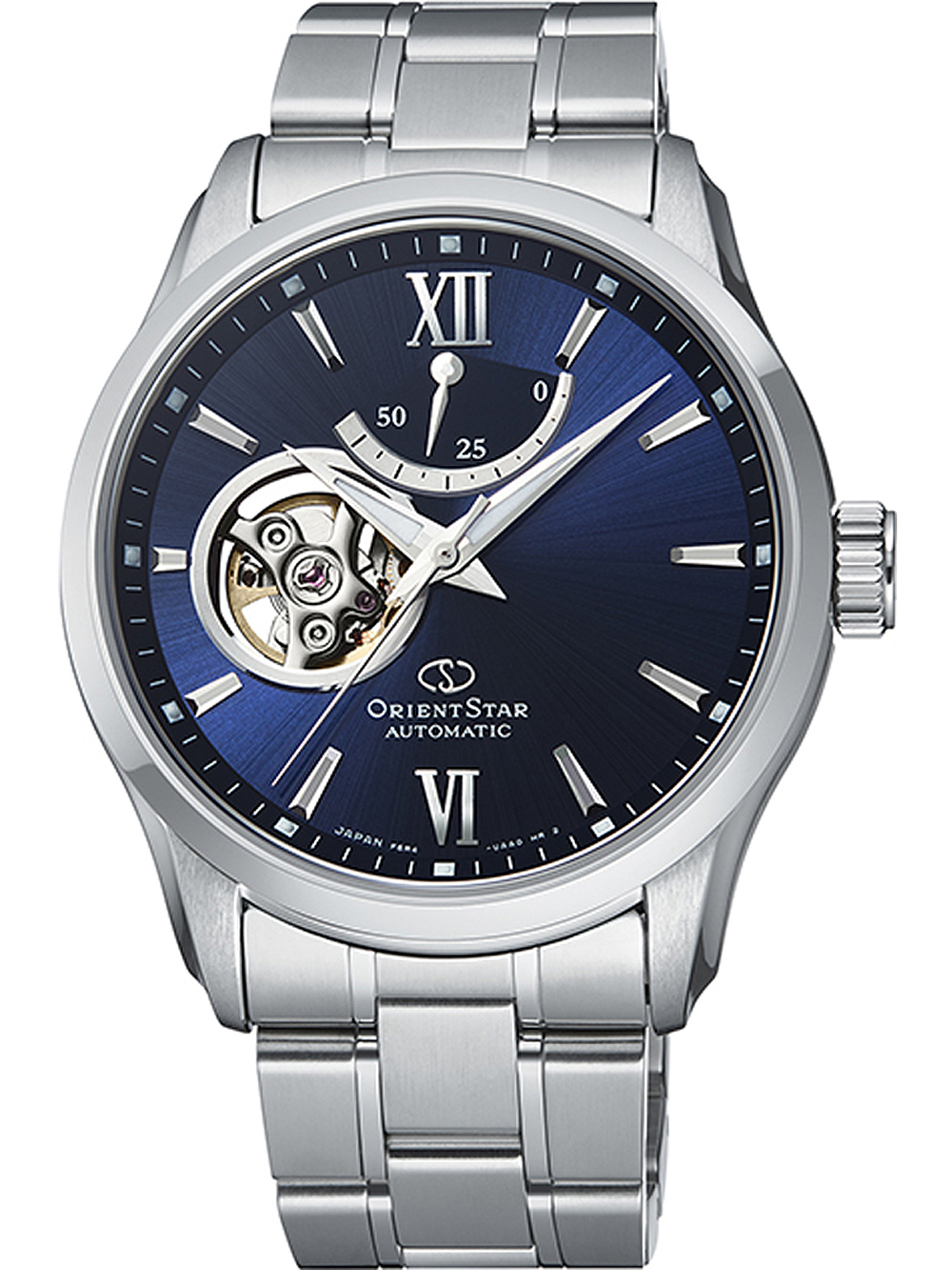Marke: Orient Star • Hersteller-Nr.: RE-AT0001L00B • Hersteller Serie: Contemporary Automatik 40mm • Funktionen: Gangreserveanzeige, Minute, Sekunde, Stunde • Antrieb: Automatik • Zifferblatt Farbe: Blau • Anzeige: Analog • Wasserdichte: 10 ATM • Lünette: Feststehend • Oberfläche: Mattiert, Poliert • Gehäuse Farbe: Silber • Gehäuse Material: Edelstahl • Gehäusedicke: 13 mm • Gehäuse Form: Rund • Gehäusebreite: 40 mm • Gehäuseboden: Glasboden, verschraubt • Geschlecht: Herren • Glas: entspiegelt, Saphirglas • Beleuchtung: Leuchtindexe, Leuchtzeiger • Stil: Klassisch • Armband Material: Edelstahl • Armband Farbe: Silber • Bandanstoßbreite: 20 mm • Schließe: Faltschließe • Max. Handgelenkumfang: 205 mm • Artikelgewicht: 0.15 kg • Lieferumfang: Anleitung, Box, Garantie Dok., Umkarton