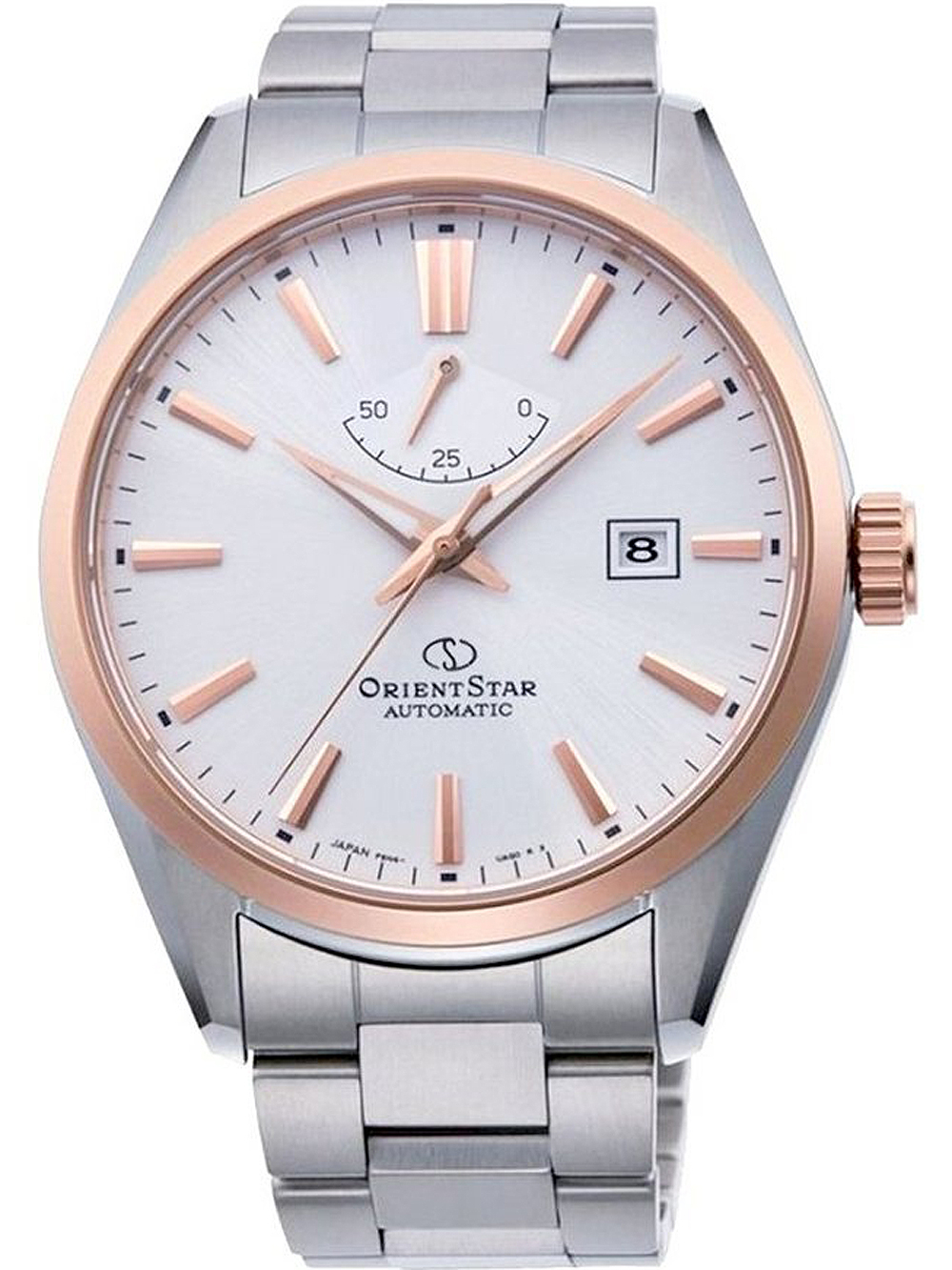 Marke: Orient Star • Hersteller-Nr.: RE-AU0401S00B • Hersteller Serie: Contemporary Automatik 42mm • Funktionen: Datum, Gangreserveanzeige, Minute, Sekunde, Stunde • Antrieb: Automatik • Zifferblatt Farbe: Silber • Anzeige: Analog • Wasserdichte: 5 ATM • Lünette: Feststehend • Oberfläche: Mattiert, Poliert • Gehäuse Farbe: Roségold, Silber • Gehäuse Material: Edelstahl • Gehäusedicke: 12 mm • Gehäuse Form: Rund • Gehäusebreite: 42 mm • Gehäuseboden: Glasboden, verschraubt • Geschlecht: Herren • Glas: entspiegelt, Saphirglas • Beleuchtung: Leuchtzeiger • Stil: Klassisch • Armband Material: Edelstahl • Armband Farbe: Roségold, Silber • Bandanstoßbreite: 21 mm • Schließe: Faltschließe • Max. Handgelenkumfang: 200 mm • Artikelgewicht: 0.16 kg • Lieferumfang: Anleitung, Box, Garantie Dok., Umkarton