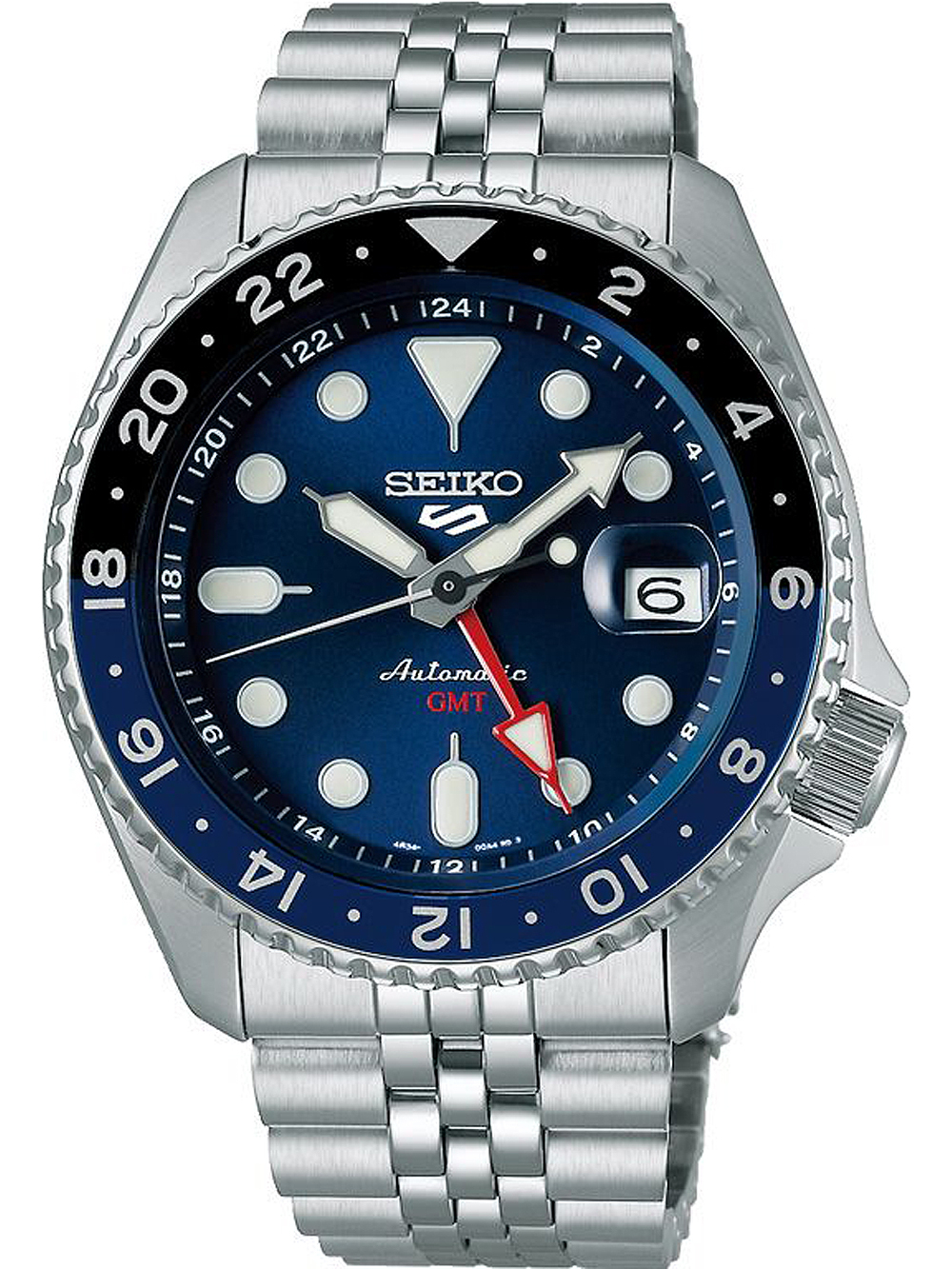 Marke: Seiko • Hersteller-Nr.: SSK003K1 • Hersteller Serie: 5 Sports GMT Automatik 43mm • Funktionen: 2 Zeitzonen, Datum, GMT, Minute, Sekunde, Stunde • Antrieb: Automatik • Uhrwerk Bezeichnung: Seiko, 4R34 • Zifferblatt Farbe: Blau • Anzeige: Analog • Wasserdichte: 10 ATM • Lünette: beidseitig, Drehbar • Oberfläche: Mattiert, Poliert • Gehäuse Farbe: Silber • Gehäuse Material: Edelstahl • Gehäusedicke: 14 mm • Gehäuse Form: Rund • Gehäusebreite: 43 mm • Gehäuseboden: Glasboden, verschraubt • Geschlecht: Herren • Glas: Hardlexglas • Beleuchtung: Leuchtindexe, Leuchtzeiger • Stil: Sportlich • Armband Material: Edelstahl • Armband Farbe: Silber • Bandanstoßbreite: 22 mm • Schließe: Faltschließe • Max. Handgelenkumfang: 210 mm • Artikelgewicht: 0.16 kg • Lieferumfang: Anleitung, Box, Garantie Dok., Umkarton
