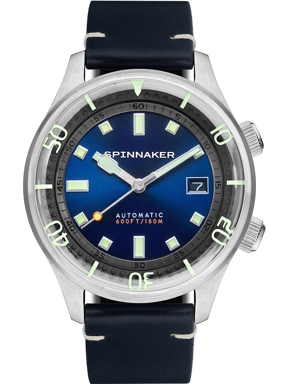 Marke: Spinnaker • Hersteller-Nr.: SP-5062-03 • Hersteller Serie: Bradner Automatik 42mm • Funktionen: Datum, Minute, Sekunde, Stunde • Antrieb: Automatik • Uhrwerk Bezeichnung: NH35, Seiko • Zifferblatt Farbe: Blau • Anzeige: Analog • Wasserdichte: 18 ATM • Lünette: beidseitig, Drehbar • Oberfläche: Mattiert, Poliert • Gehäuse Farbe: Silber • Gehäuse Material: Edelstahl • Gehäusedicke: 16 mm • Gehäuse Form: Rund • Gehäusebreite: 42 mm • Gehäuseboden: Glasboden, verschraubt • Geschlecht: Herren • Krone: Verschraubt • Glas: entspiegelt, Saphirglas • Beleuchtung: Leuchtindexe, Leuchtzeiger • Stil: Sportlich • Armband Material: Kalbsleder • Armband Farbe: Schwarz • Bandanstoßbreite: 20 mm • Schließe: Dornschließe • Max. Handgelenkumfang: 230 mm • Artikelgewicht: 0.10 kg • Lieferumfang: Anleitung, Box, Garantie Dok., Umkarton