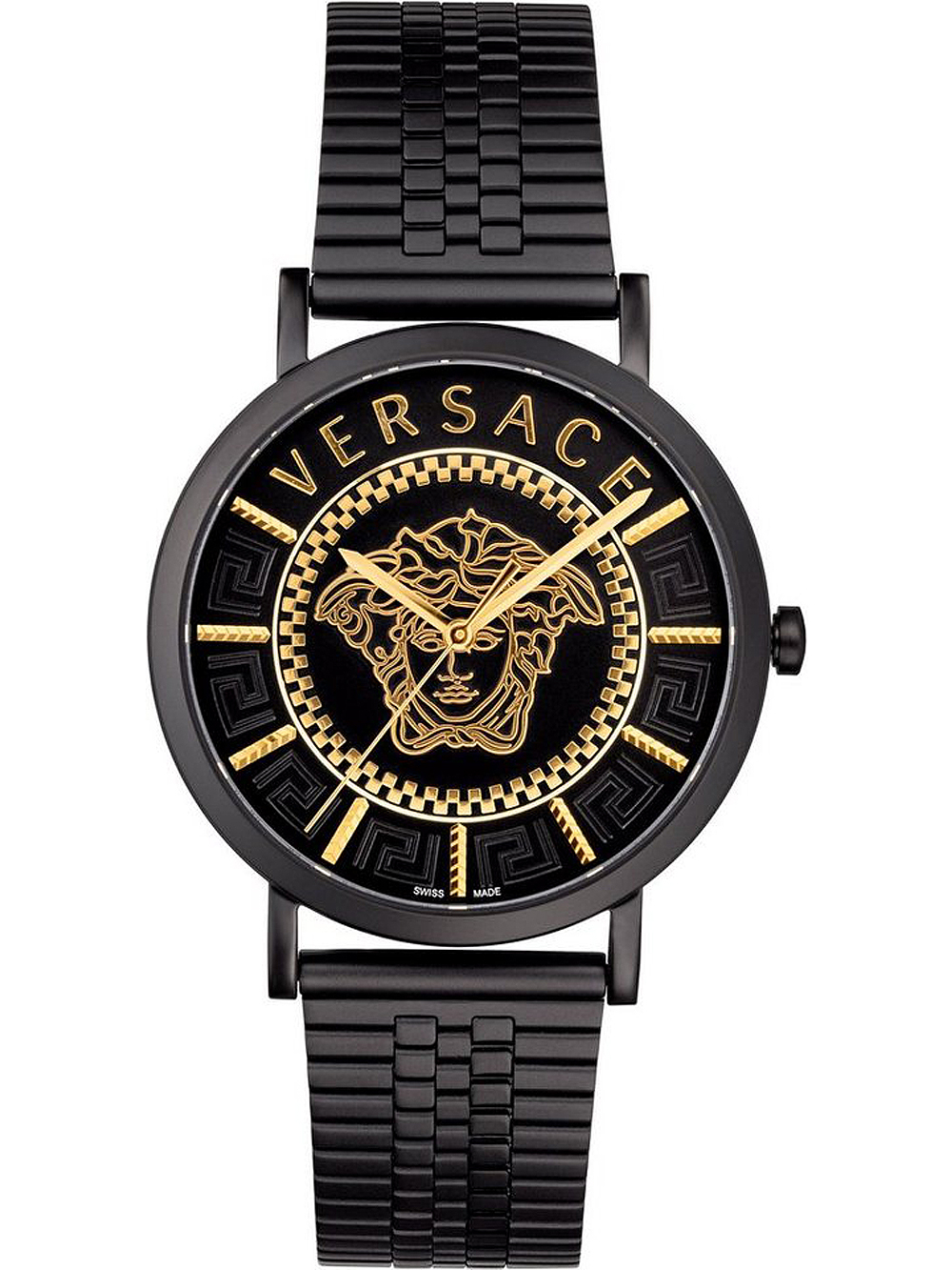 Marke: Versace • Hersteller-Nr.: VEJ400621 • Hersteller Serie: V-Essential 40mm • Funktionen: Minute, Sekunde, Stunde • Antrieb: Batterie (Quarz) • Zifferblatt Farbe: Schwarz • Anzeige: Analog • Wasserdichte: 5 ATM • Lünette: Feststehend • Oberfläche: Mattiert • Gehäuse Farbe: Schwarz • Gehäuse Material: Edelstahl • Gehäusedicke: 8 mm • Gehäuse Form: Rund • Gehäusebreite: 40 mm • Gehäuseboden: Edelstahlboden, gepresst • Geschlecht: Herren • Glas: entspiegelt, Saphirglas • Stil: Modern • Armband Material: Edelstahl • Armband Farbe: Schwarz • Bandanstoßbreite: 20 mm • Schließe: Klippschließe • Max. Handgelenkumfang: 210 mm • Artikelgewicht: 0.08 kg • Lieferumfang: Anleitung, Box, Garantie Dok., Umkarton